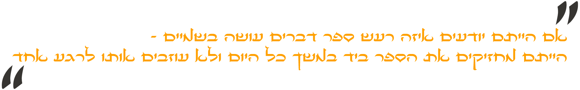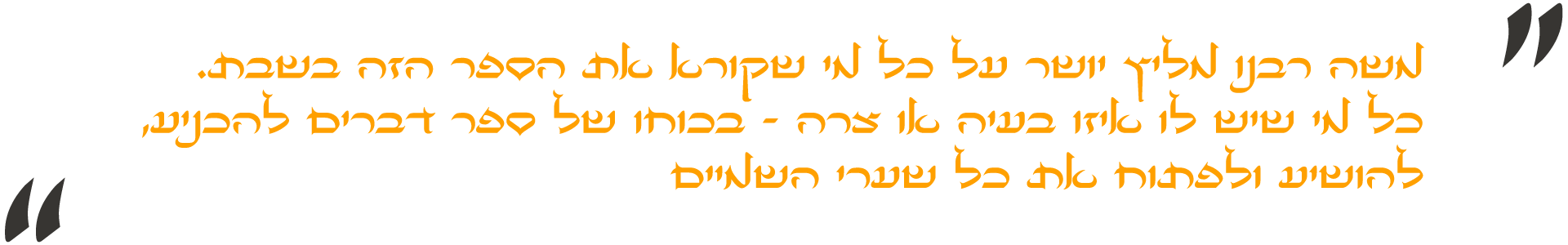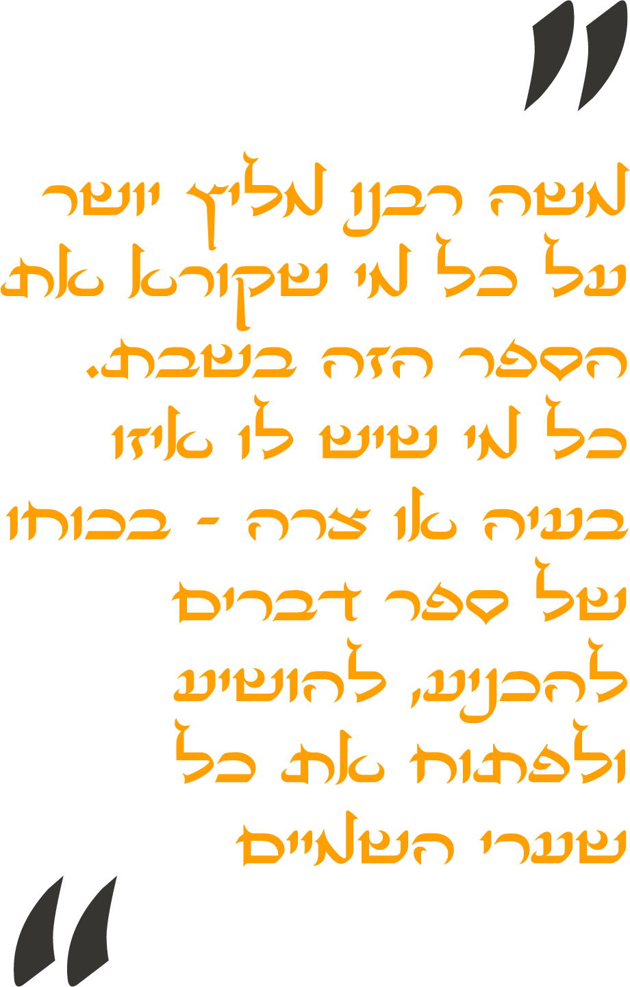 לפעמים אדם מתפלל ומבקש מהקדוש ברוך הוא ישועה, אבל השער שלו חסום. ובכוחו של ספר דברים לפתוח את כל השערים ולסלול את הדרך מהאדם ישירות לקדוש ברוך הוא.